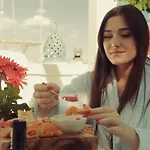 Alguns dos quartos com ar condicionado têm terraço e vestuário, e instalações como Wi-Fi e TV de tela plana, juntamente com máquina de fazer café e frigobar. Juntamente com casa de banho separada, banheira e chuveiro, os confortos dos casas de banho incluem também touca de banho e lençóis de banho.